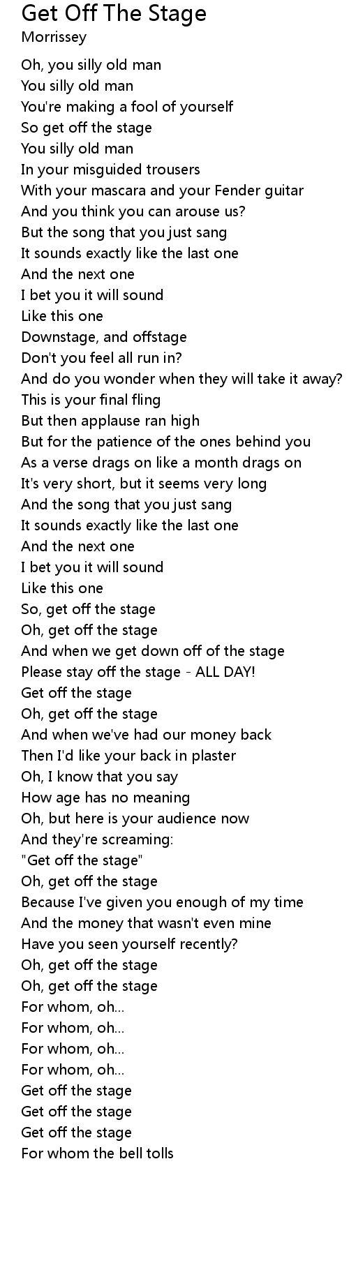 So get off the stage |
