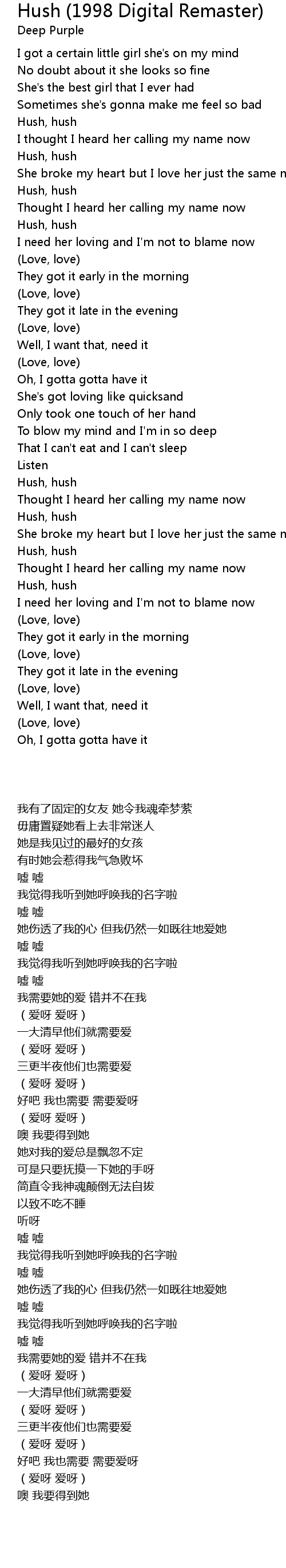 Hush (1998 Digital Remaster) 歌词