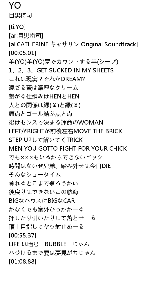 | [00:09.48] | 羊(YO)羊(YO)夢でカウントする羊(シープ) |