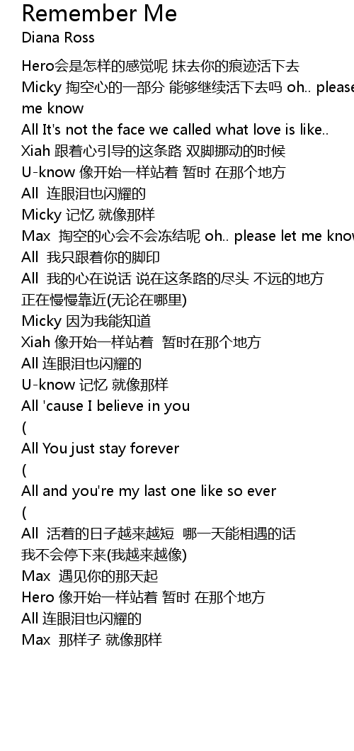 | 歌曲 | Remember Me |