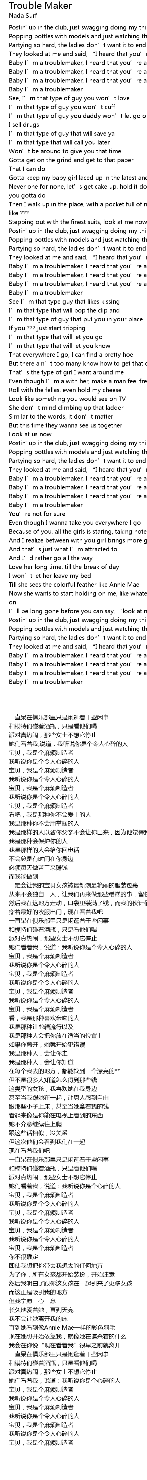| [03:53.460] | 宝贝,我是个麻烦制造者 |