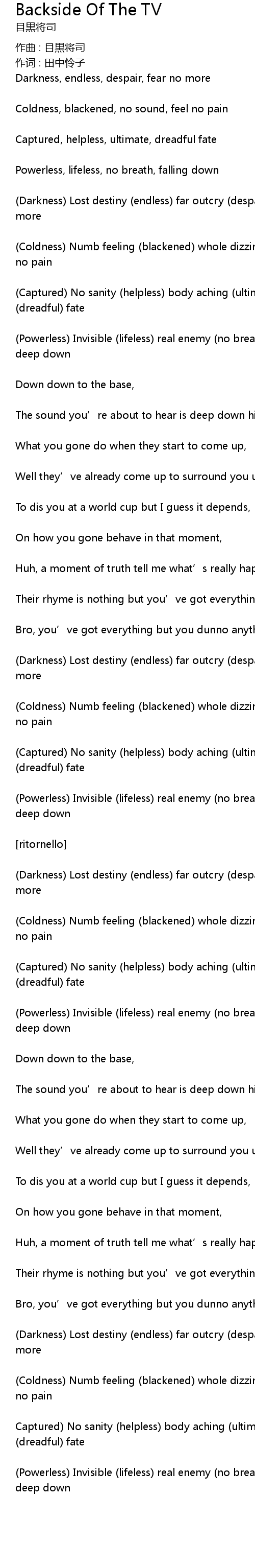 | 歌曲 | Backside Of The TV |