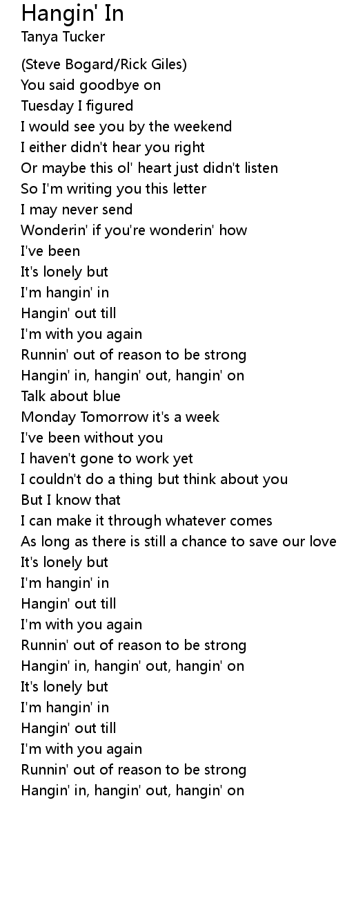 Hangin' in, hangin' out, hangin' on |