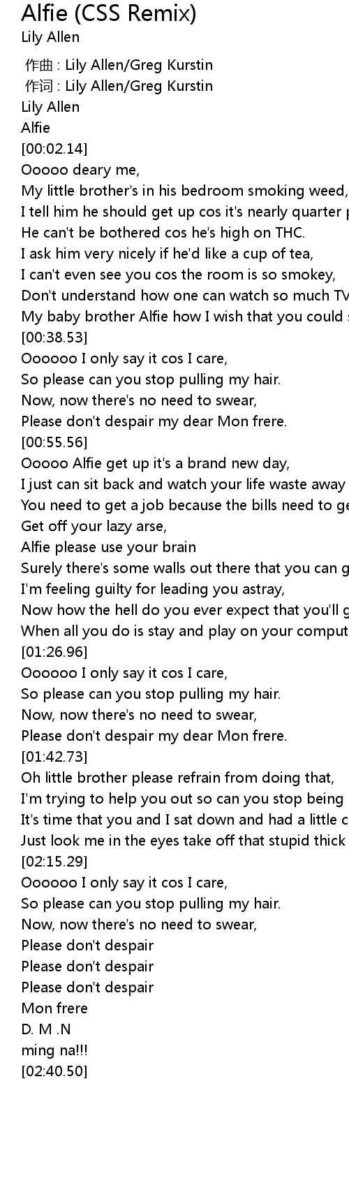 | [00:01.55] | Alfie |