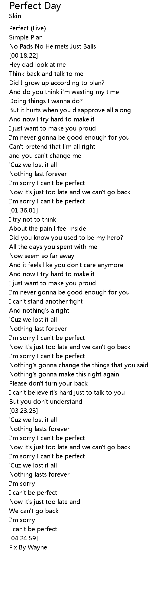 | [01:16.86] | I'm sorry I can't be perfect |