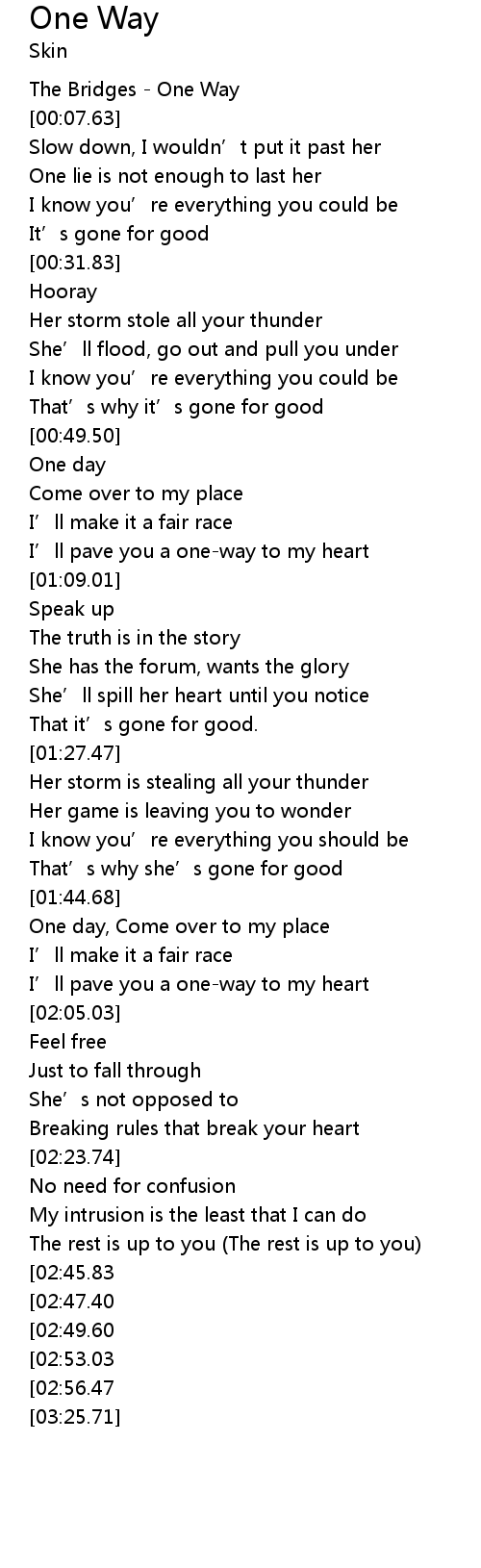 | [00:01.34] | The Bridges - One Way |