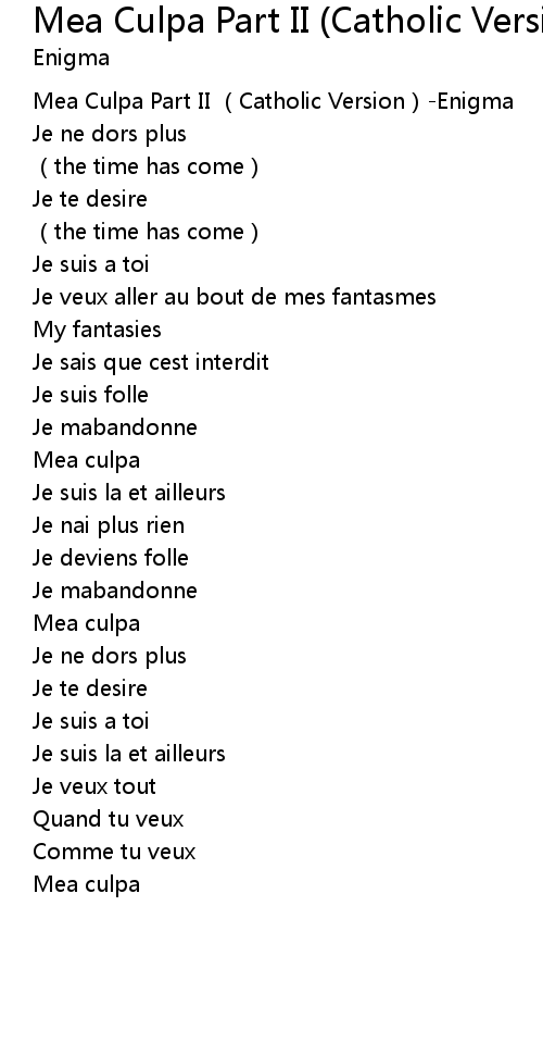 | [00:01.370] | Mea Culpa Part II Catholic Version Enigma |