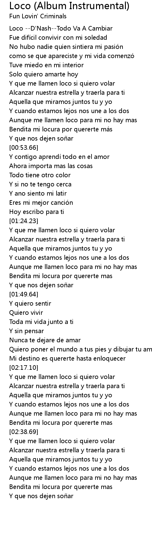 | [00:00.00] | Loco --D'Nash--Todo Va A Cambiar |