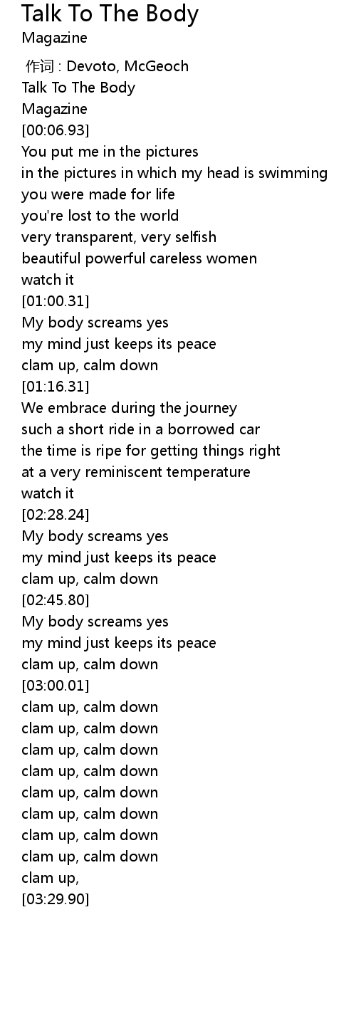 | [00:00.00] | 作词 : Devoto, McGeoch |