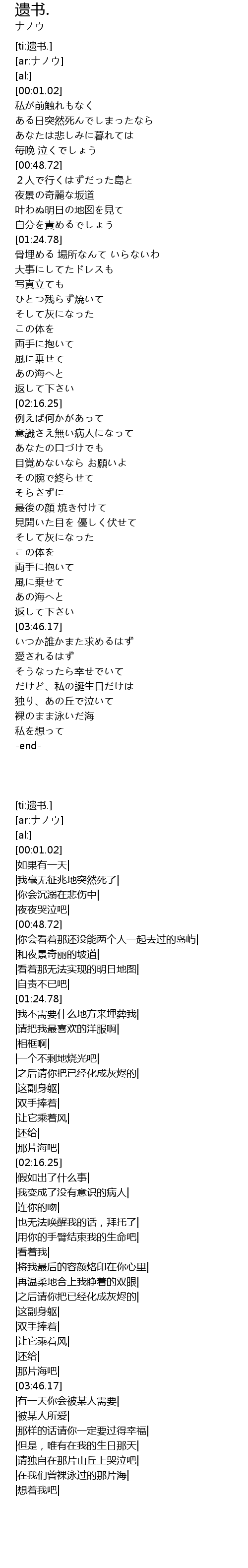 [ti:遗书.] |