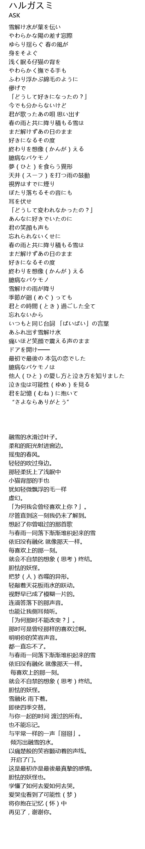 | [00:38.070] | ゆらり揺らぐ 春の風が |