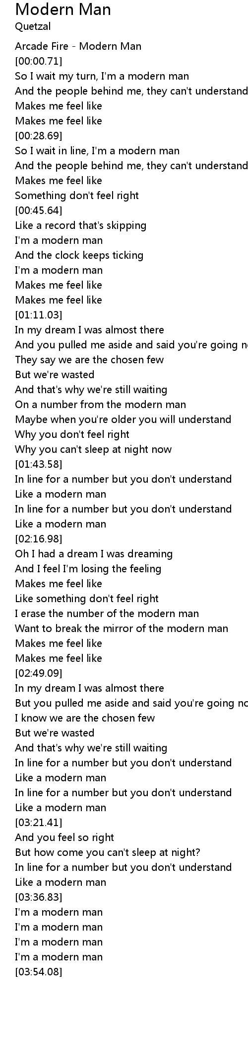 | [00:58.53] | I'm a modern man |
