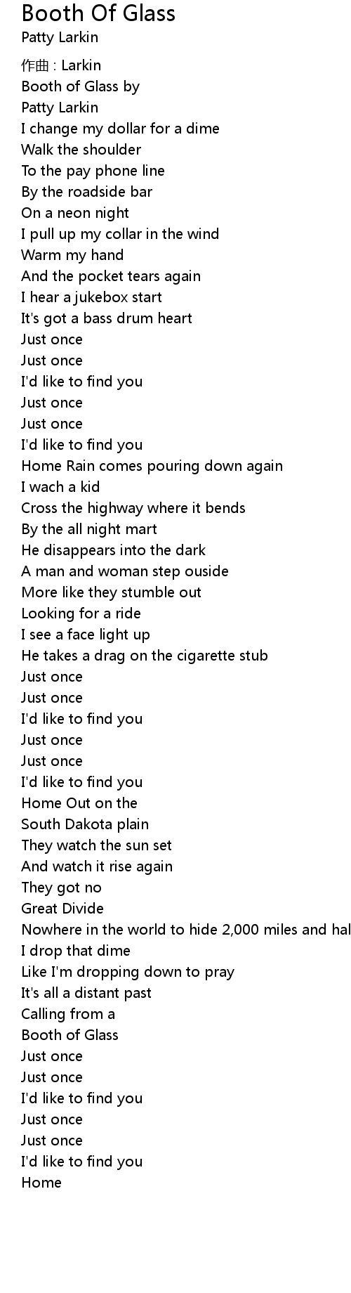 | 歌曲 | Booth Of Glass |