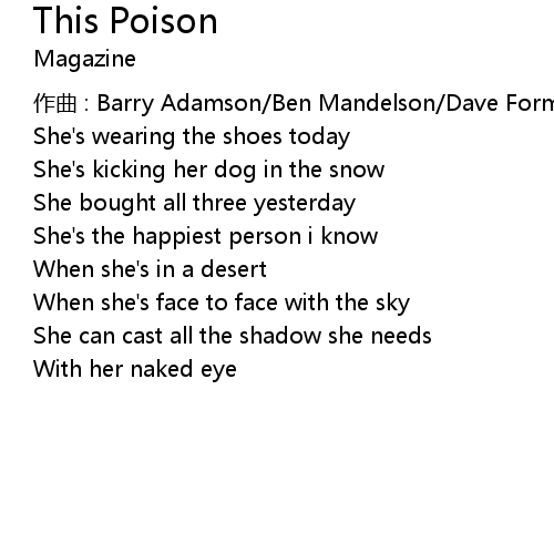 | 作曲 : Barry Adamson/Ben Mandelson/Dave Formula/Howard Devoto/John Doyle | |