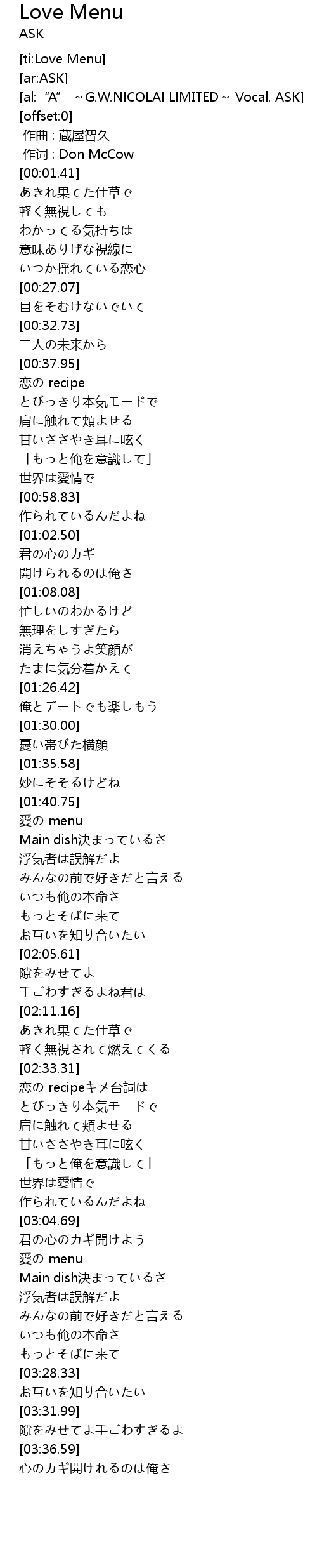 | [02:39.41] | 恋の recipeキメ台詞は |