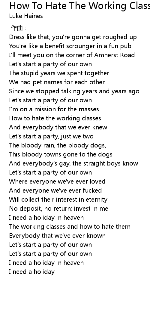 | 歌曲 | How To Hate The Working Classes |