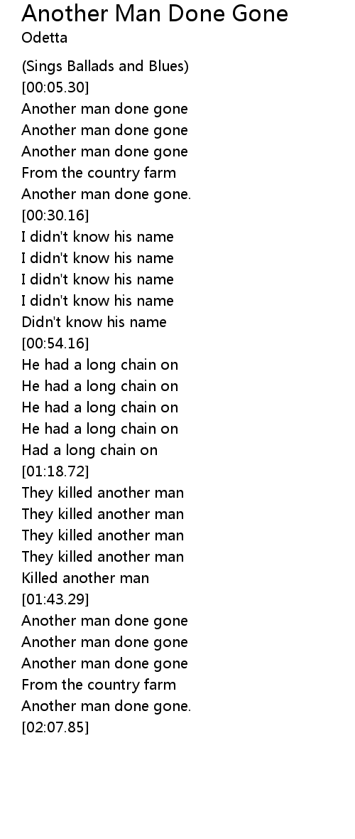 | [00:18.92] | Another man done gone |