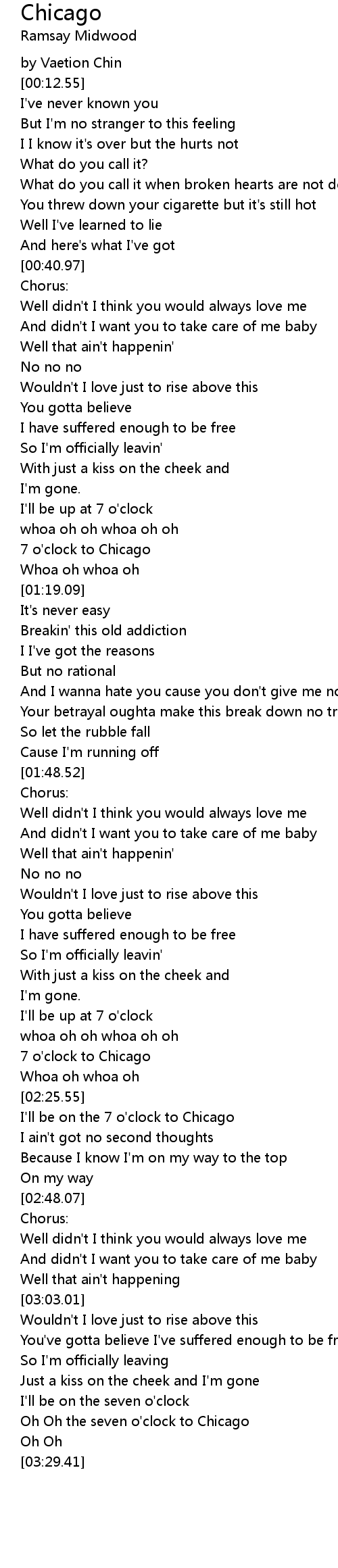 Oh Oh the seven o'clock to Chicago |