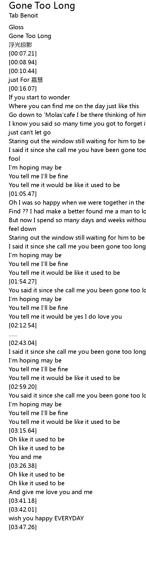 | 歌曲 | Gone Too Long |