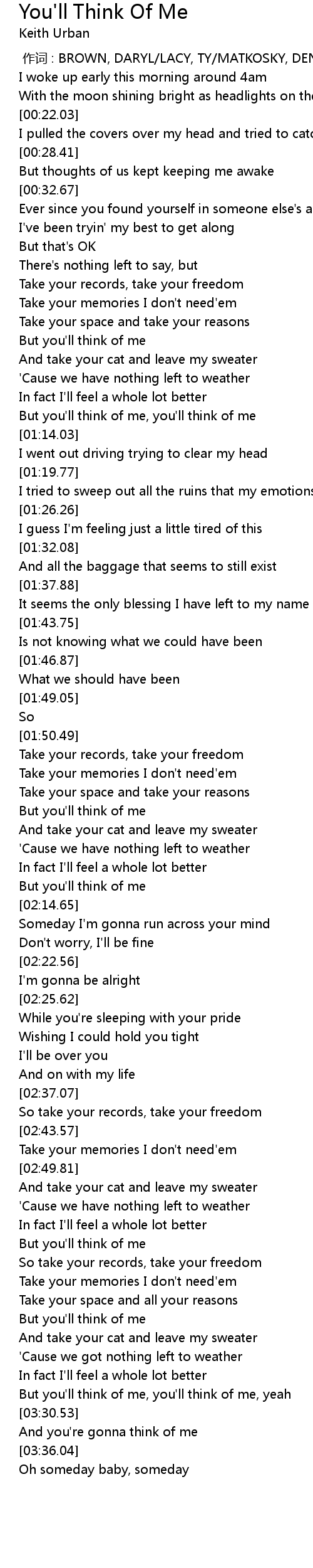 | [03:24.73] | But you'll think of me, you'll think of me, yeah |