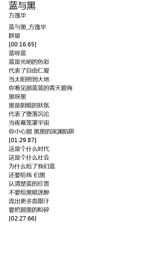 | [00:-1.05] | 蓝与黑_方逸华 |
