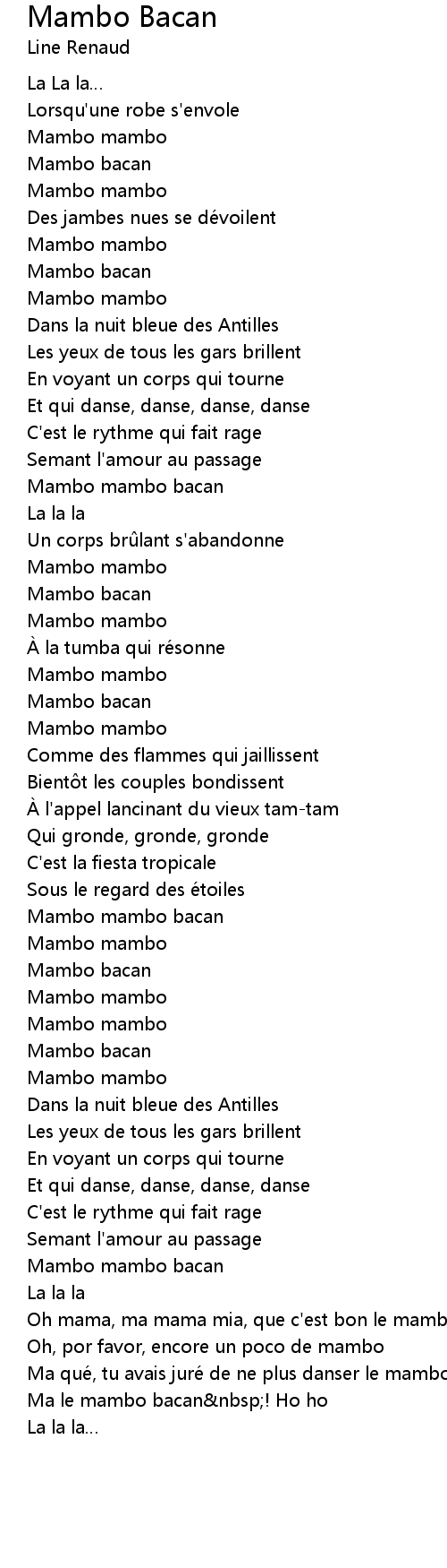 | Oh mama, ma mama mia, que c' est bon le mambo | |