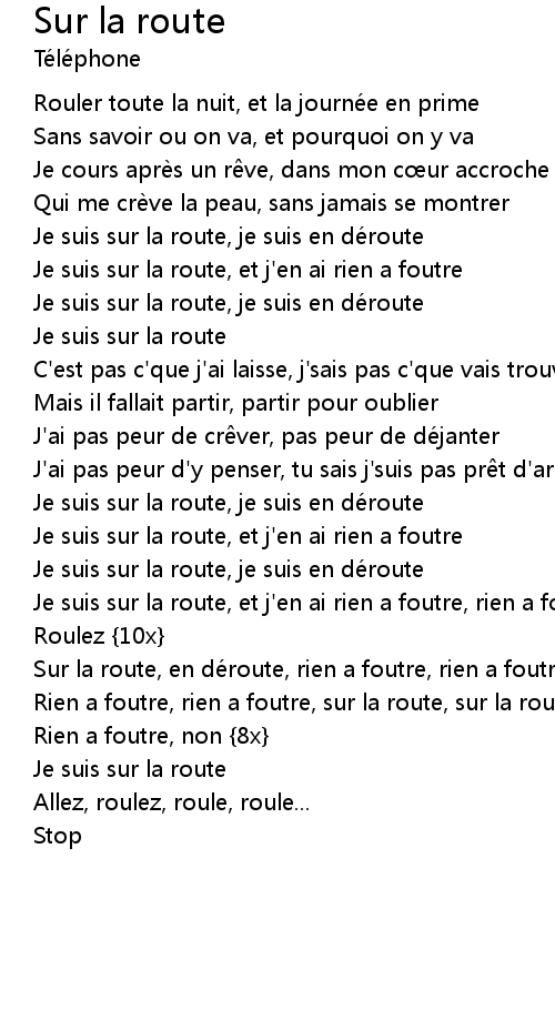 | Sur la route, en de route, rien a foutre, rien a foutre | |