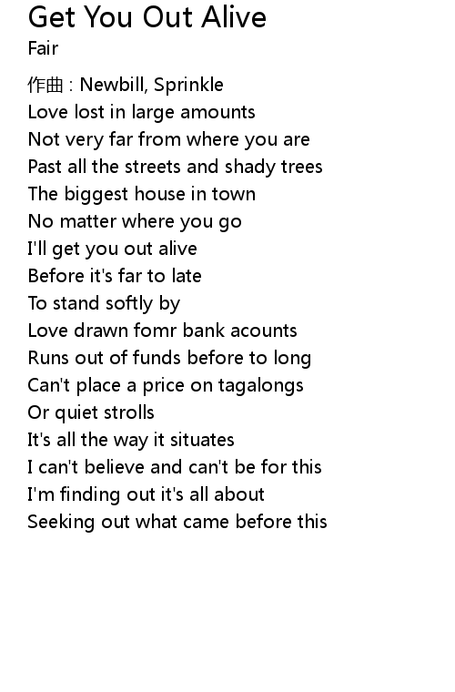 | 歌曲 | Get You Out Alive |