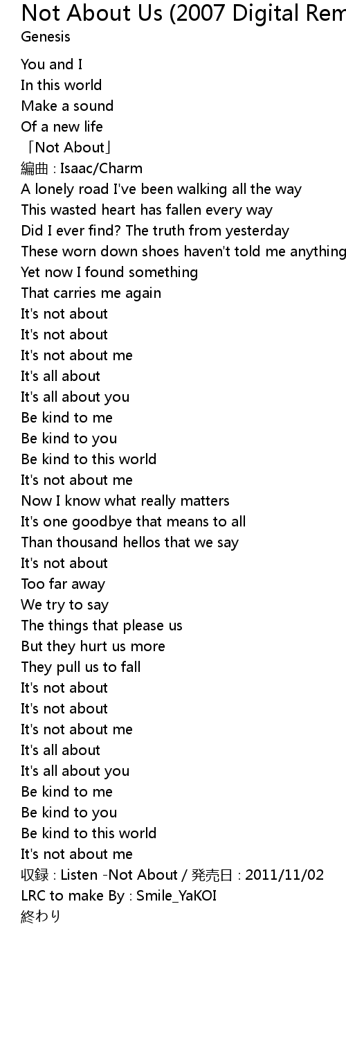 | 歌曲 | Not About Us (2007 Digital Remaster) |