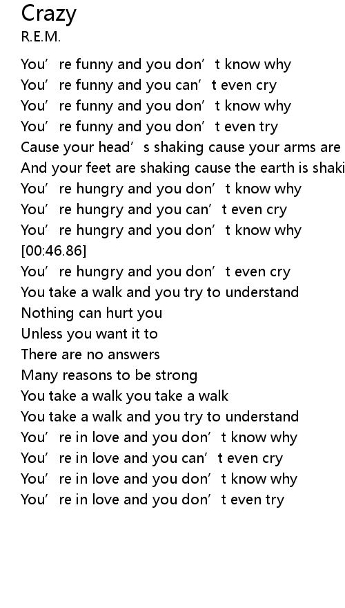 | [00:19.58] | You' re funny and you can' t even cry |