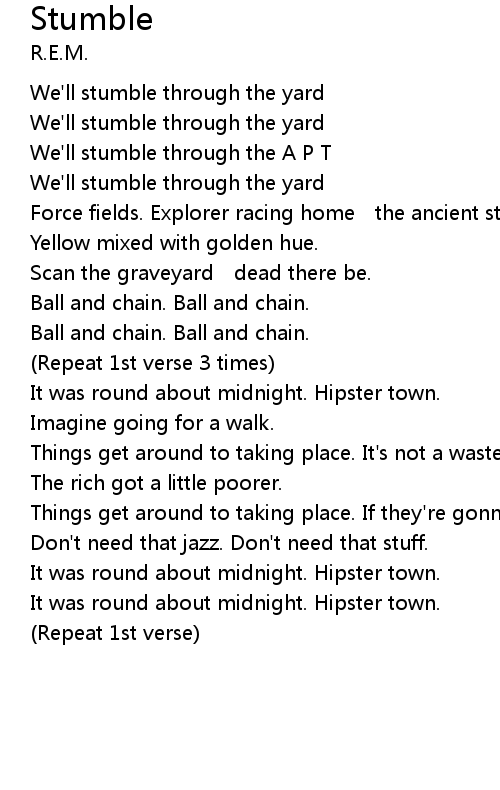 | We'll stumble through the yard | |