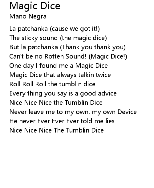 | Can't be no Rotten Sound! (Magic Dice!) | |