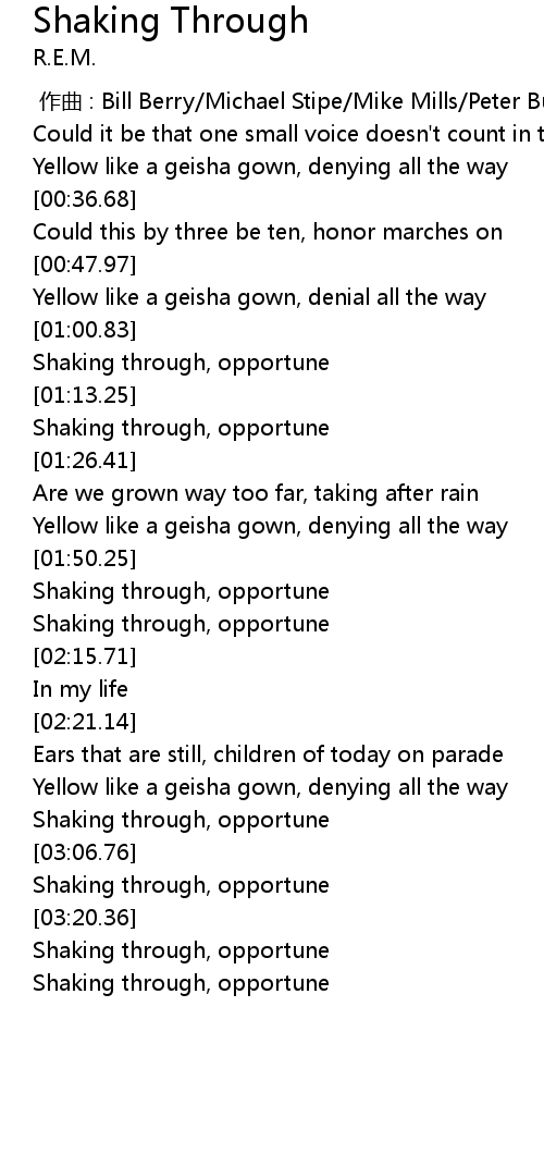 | [00:00.00] | 作曲 : Bill Berry/Michael Stipe/Mike Mills/Peter Buck |