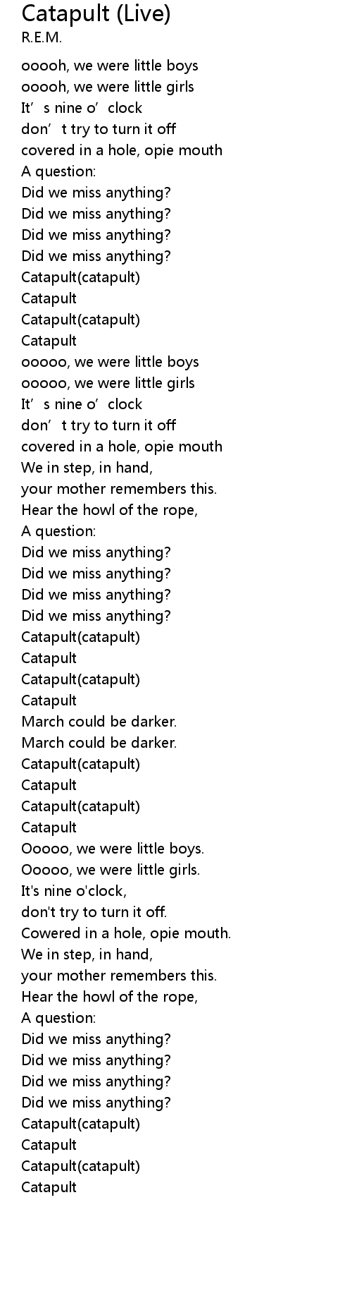 | 歌曲 | Catapult (Live) |