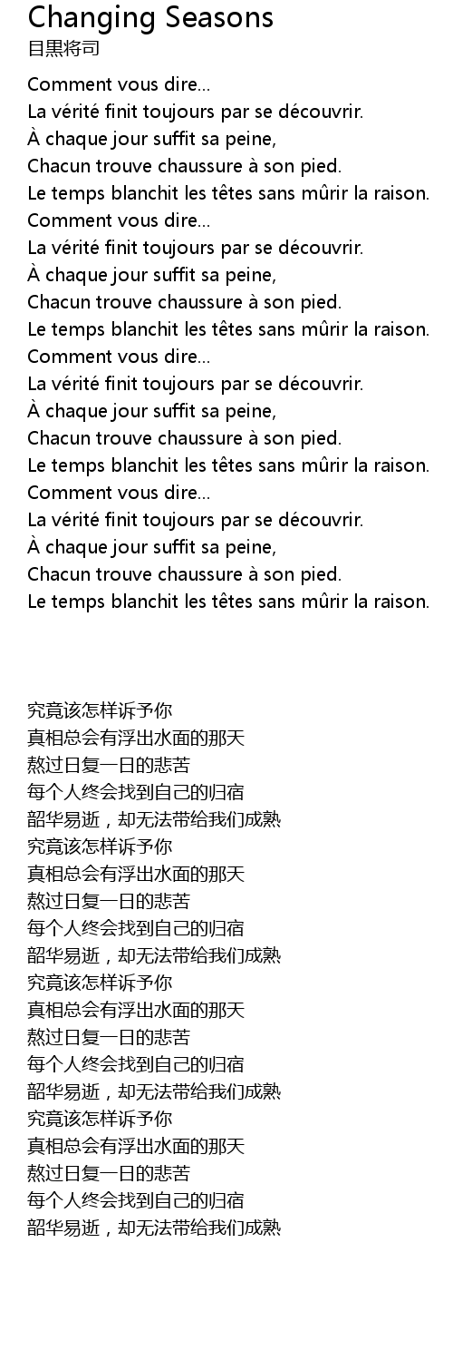 | 歌曲 | Changing Seasons |