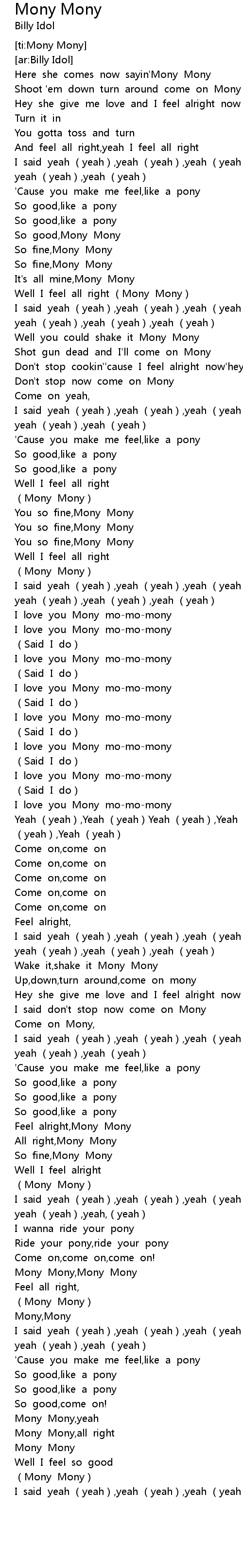 | [04:05.20] | Feel alright, Mony Mony |