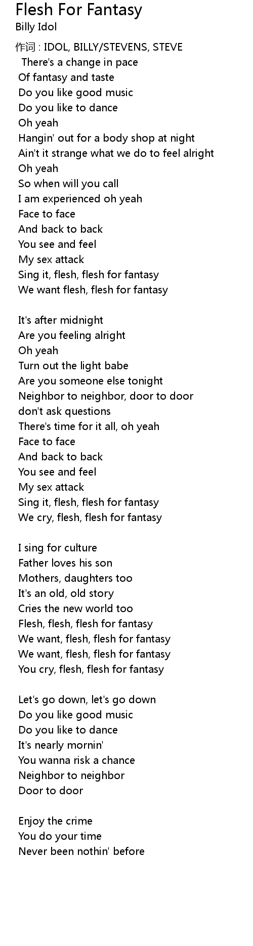 | 歌曲 | Flesh For Fantasy |