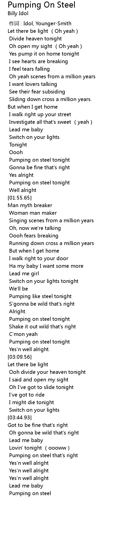 | [02:54.91] | Pumping on steel tonight |