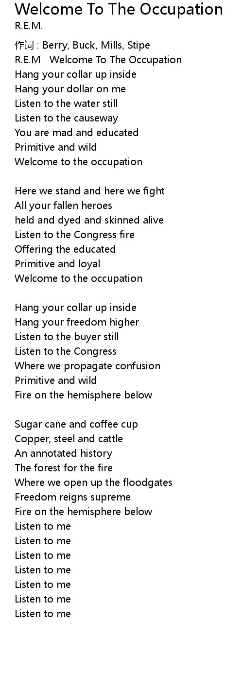 | R.E.M--Welcome To The Occupation | |