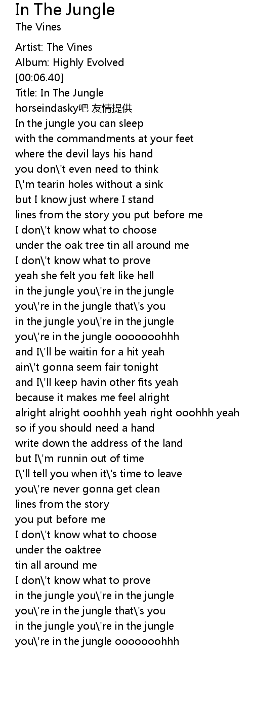 | [03:33.57] | in the jungle you' re in the jungle |