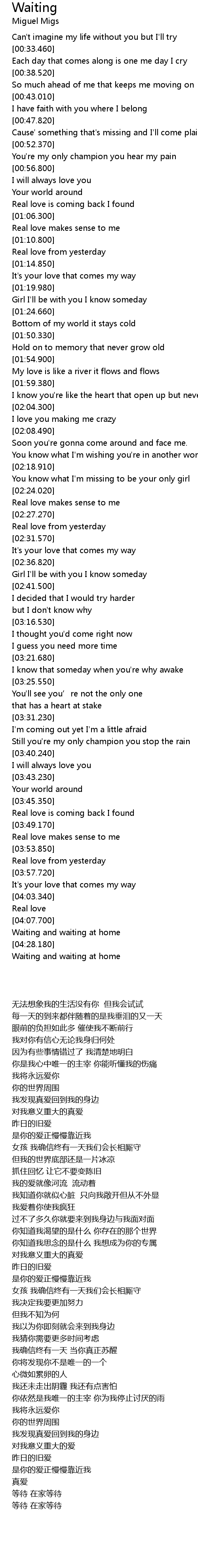 | [04:24.880] | Waiting and waiting at home |