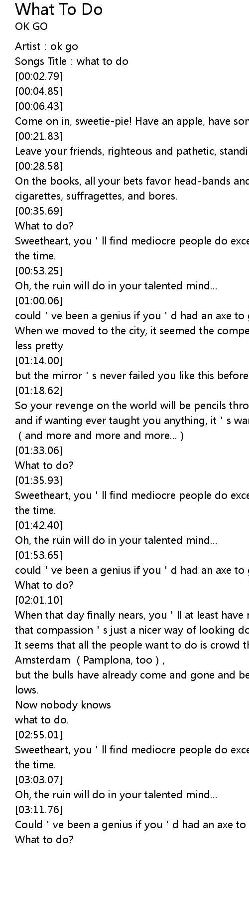 | [00:57.25] | Oh, the ruin will do in your talented mind... |