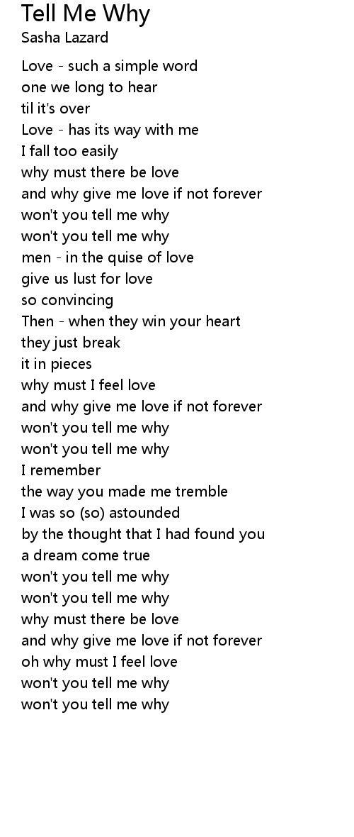 won't you tell me why |