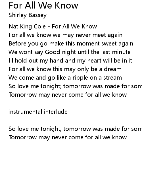 | Nat King Cole - For All We Know | |