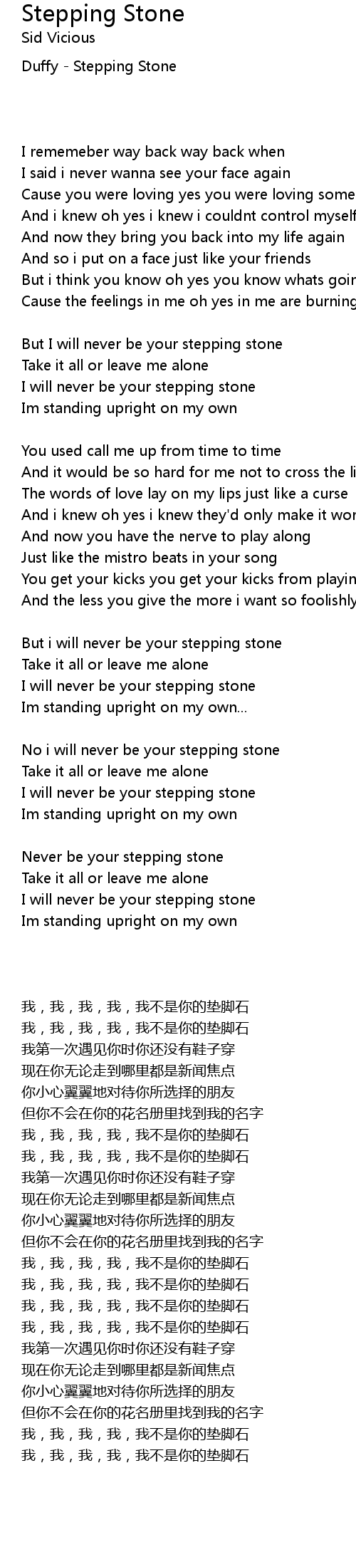 But I will never be your stepping stone |