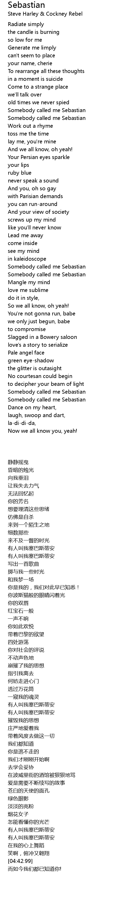 Somebody called me Sebastian |