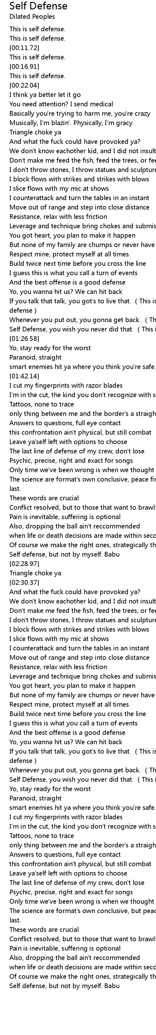 | [01:39.21] | smart enemies hit ya where you think you' re safe. Self Defense |