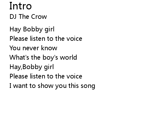 | [00:17.83] | Hay,Bobby girl |