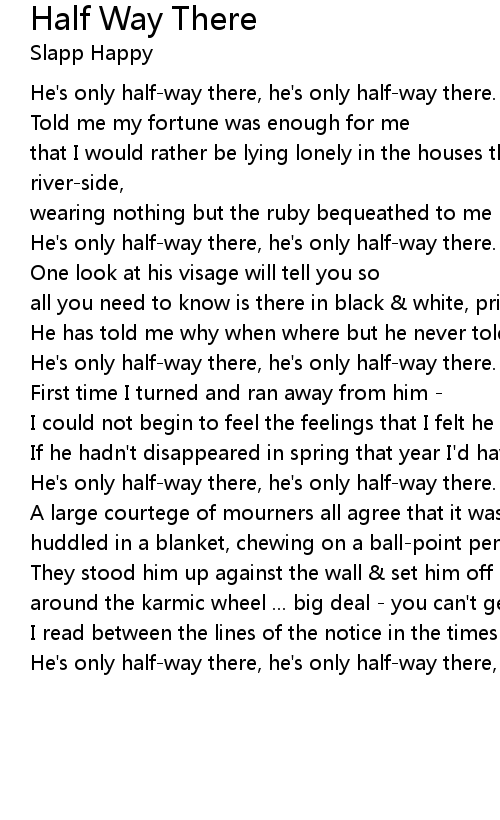 He's only half-way there, he's only half-way there, half-way there, etc. |