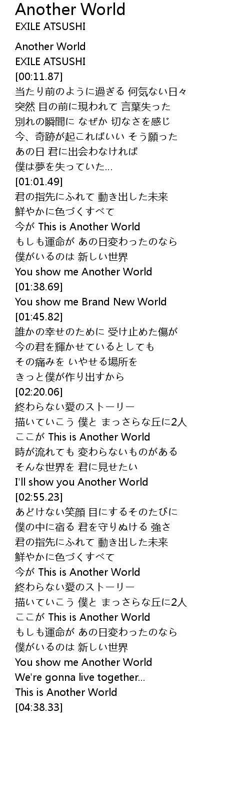 | [01:42.68] | You show me Brand New World |